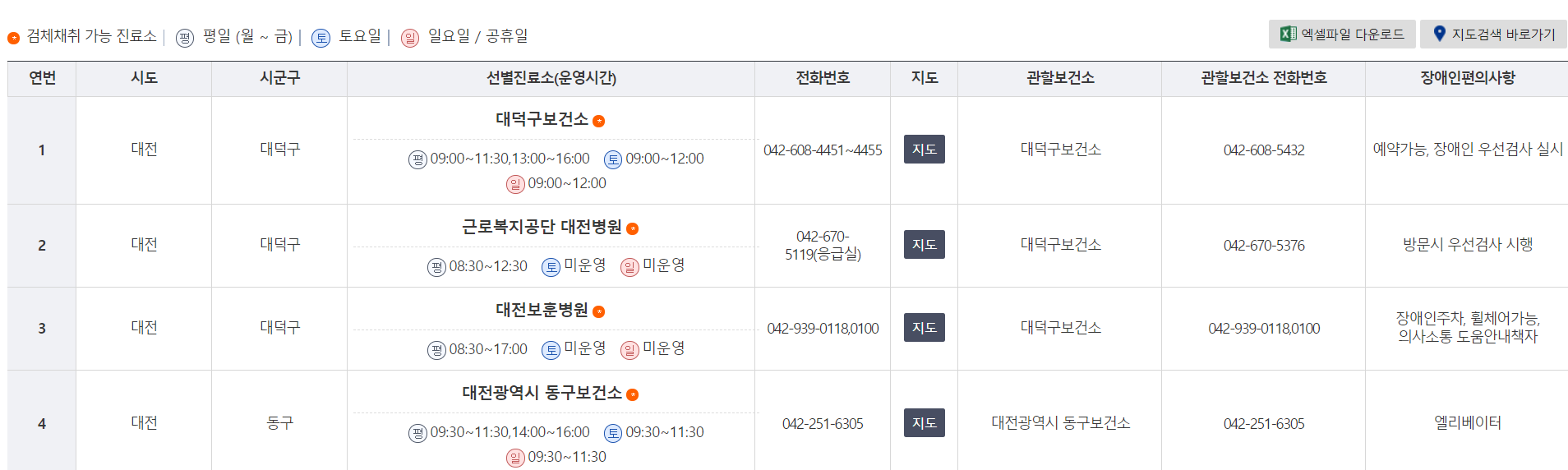 거주 지역명을 검색하시면, 바로 진료소 정보 조회가 가능합니다.